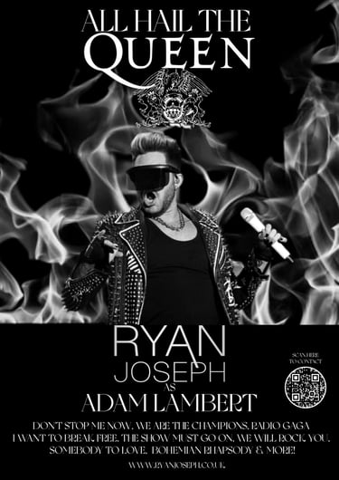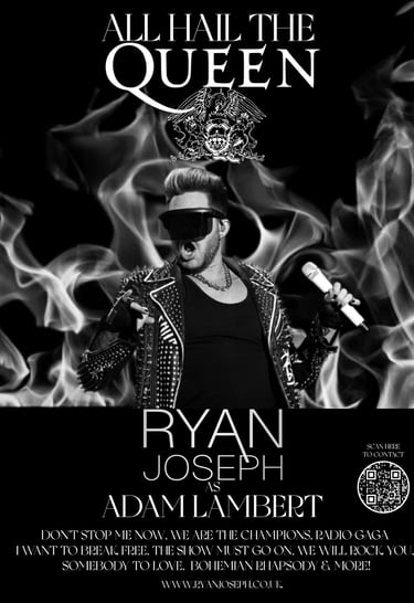Ryan offers a wide range of shows, including "A Celebration of George Michael and WHAM!" and "All Hail The Queen" a tribute to Queen featuring Ryan as Adam Lambert.